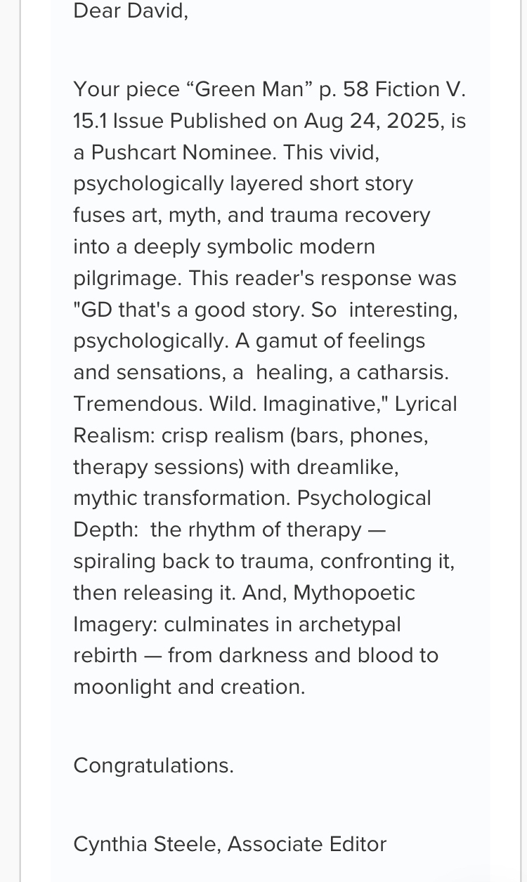 *The Green Man is nominated by Cirque Magazine for a Pushcart prize!